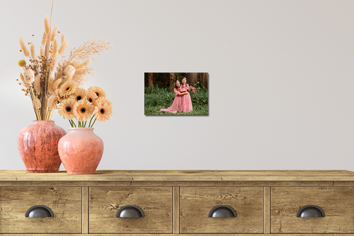 Fotoobraz 15x10 cm z Vaší fotografie je vyrobený z plátna, na kterém tiskneme Vaší fotku. Plátno je nataženo na rám fotoobrazu, který uchová vzpomínku přímo na Vaší stěně.