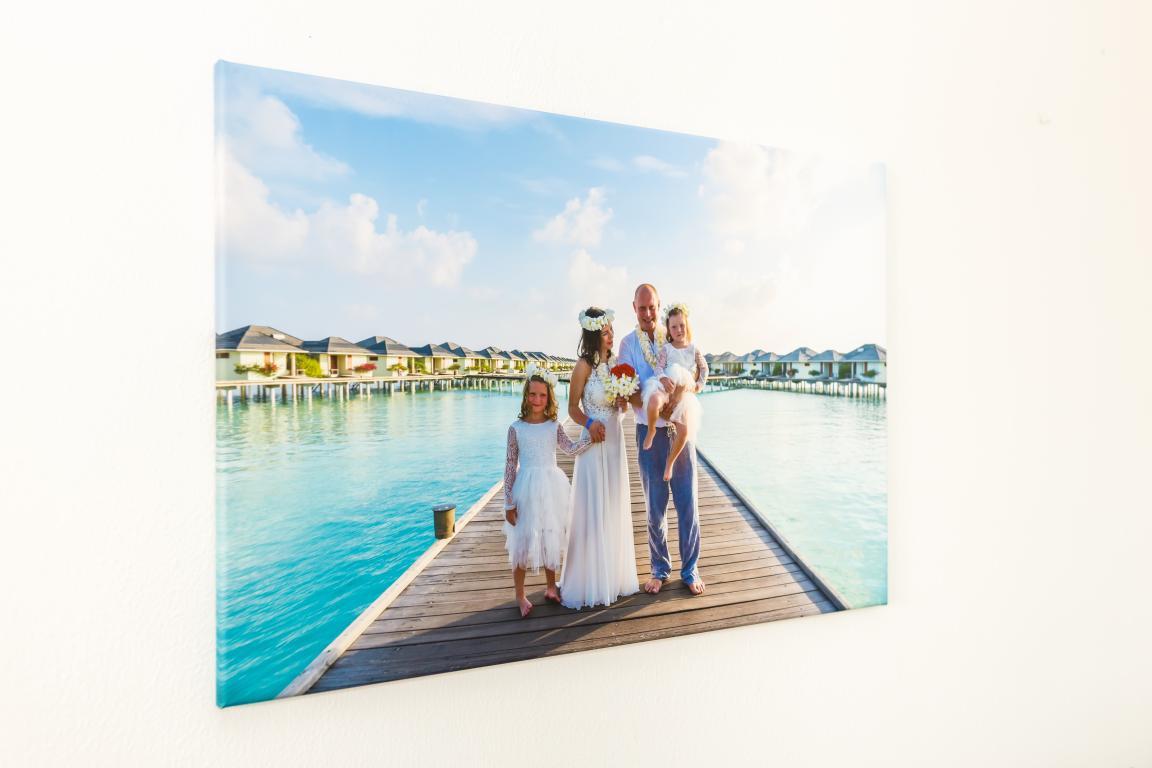 Fotoobraz 200x100 cm z Vaší fotografie je vyrobený z plátna, na kterém tiskneme Vaší fotku. Plátno je nataženo na rám fotoobrazu, který uchová vzpomínku přímo na Vaší stěně.